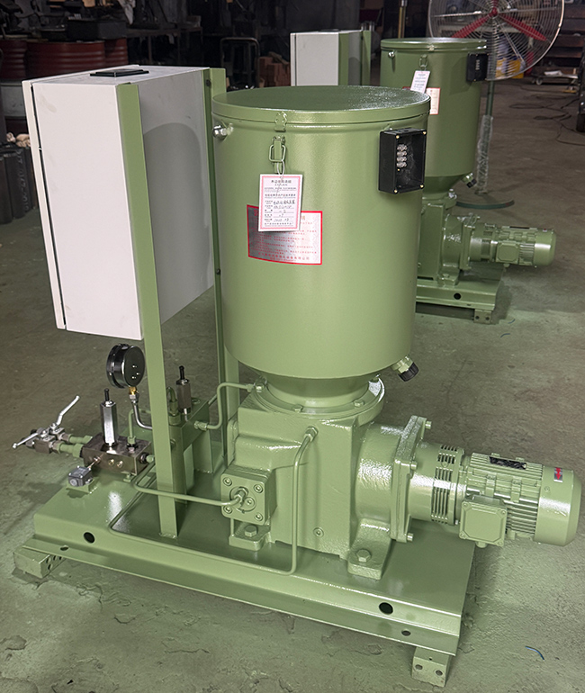 該系列電動(dòng)潤(rùn)滑泵適用于潤(rùn)滑點(diǎn)多、分布范圍廣、給油頻率高、公稱壓力為40(20MPa)的單、雙線干(稀)油集中潤(rùn)滑系統(tǒng)中,作為供送潤(rùn)滑劑的裝置,還可配備移動(dòng)小車、膠管、油槍及電纜組成移動(dòng)式電動(dòng)潤(rùn)滑泵裝置以便用于給油頻率低,潤(rùn)滑點(diǎn)少,給油量大且不便于采用集中潤(rùn)滑的單機(jī)設(shè)備,進(jìn)行移動(dòng)給油,貯油桶還設(shè)有油位自動(dòng)報(bào)警裝置,如配以相應(yīng)的電氣控制箱還可實(shí)現(xiàn)自動(dòng)控制,并對(duì)系統(tǒng)進(jìn)行監(jiān)視。