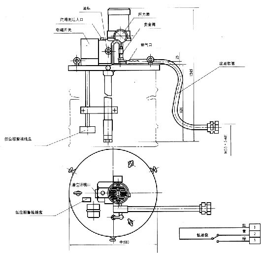 6、本泵設(shè)有低位報(bào)警裝置,報(bào)警后應(yīng)及時(shí)地向油筒內(nèi)充填潤(rùn)滑脂。