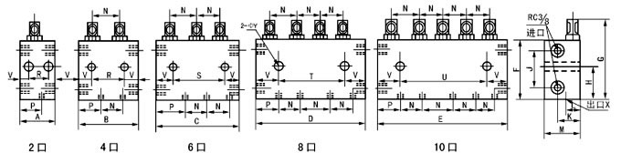 4、在分配器上下對應出油口間設(shè)有合二為一的出油結(jié)構(gòu),易改奇數(shù)出油,使用時只需將孔內(nèi)的螺釘擰出,把上或下不用的那個出口用R1/4 螺塞封堵即可。