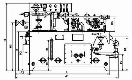 4、型號后帶“A”者為有壓力罐的裝置,可滿足發生意外事故或突然停電時,儲存在壓力罐中的油液可作臨時壓力油源向系統短時供油,但需注意壓力罐上的一般單向閥應水平安裝,不得向下安裝(對較小的旋啟式單向閥允許向上安裝),附圖中應作相應改變。