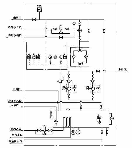 3、在油箱上裝有二個電接點溫度計和二個液位開關,當油箱油溫低于某一調定溫度時,電加熱器通電或蒸汽閥門開啟,對油液進行加熱,直到達到正常操作油溫為止。當油箱中油液的溫度低于最低調定溫度時,油泵不能啟動,需對油箱中油液加熱。當油箱的液位達到上限或下限時,液位開關發出報警信號。