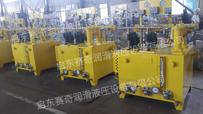 工作時,油液由齒輪泵從油箱吸出,經單向閥、雙筒網式油濾器、列管式油冷卻器,被直接送到設備的潤滑點。油站的最高供油壓力為0.4MPa,最低供油壓力為0.1MPa,根據潤滑點的要求,通過調節安全閥確定使用壓力,當油站的工作壓力超過安全閥的調定壓力時,安全閥將自動打開,多余的油液即流回油箱。正常工作時,油泵一臺工作、一臺備用。有時設備耗油量由于某種原因需要增加時,則系統壓力下降,當降到調定值時,通過壓力控制器調節,備用泵自動開啟,與工作泵一起工作,直到壓力正常時,備用泵自動停止。若油壓繼續下降到另一調定值時,則通過另一壓力控制器調節,發出事故警報。