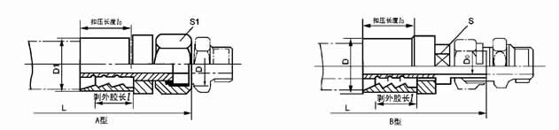 A 型接頭與焊接式管接頭連接使用。 標記示例:膠管內徑16mm,Ⅲ層鋼絲,膠管長度1000mm 的A 型扣壓式膠管接頭:膠管接頭16 Ⅲ -1000 JB/ZQ4427-86 |